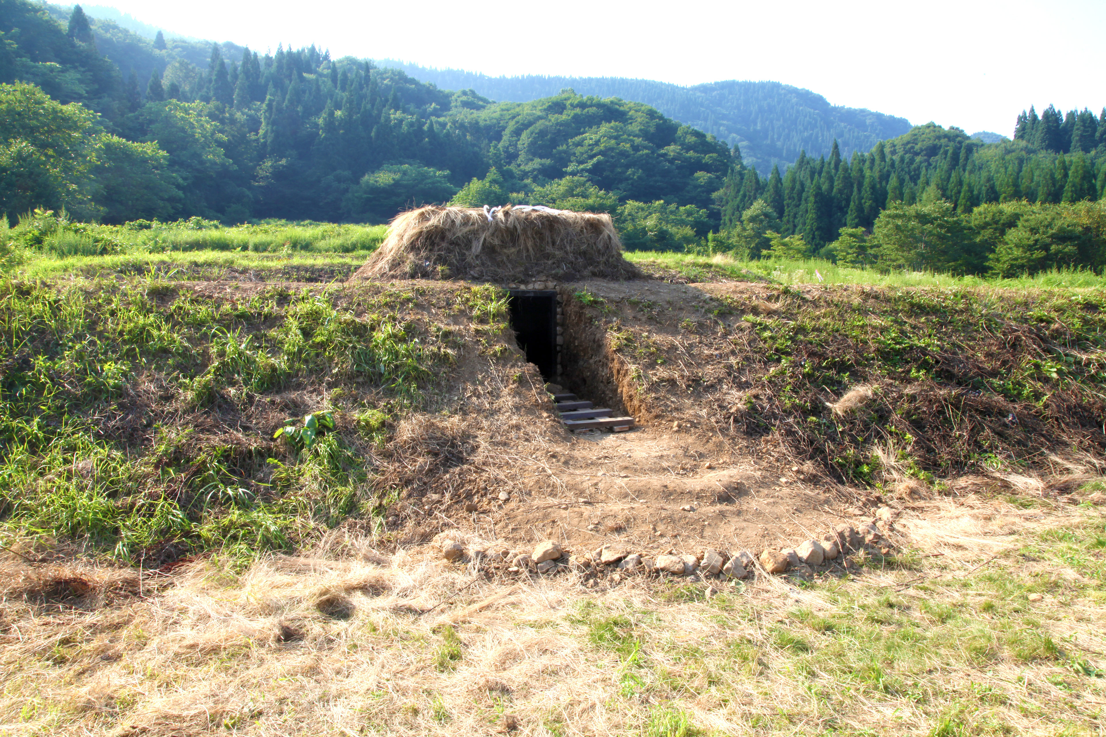 秋田県上小阿仁村で行われた「かみこあにプロジェクト2016」にて滞在制作した作品。八木沢集落で使われなくなった棚田に穴を掘り、空間上部からビニールホースを通し、太陽光が入り込み内部でホースが発光する仕組みとなっている。八木沢にの大地に根を張る植物たちが、太陽光のエネルギーを根元まで伝えるイメージから、土の中に太陽光を届ける造形物を制作した。