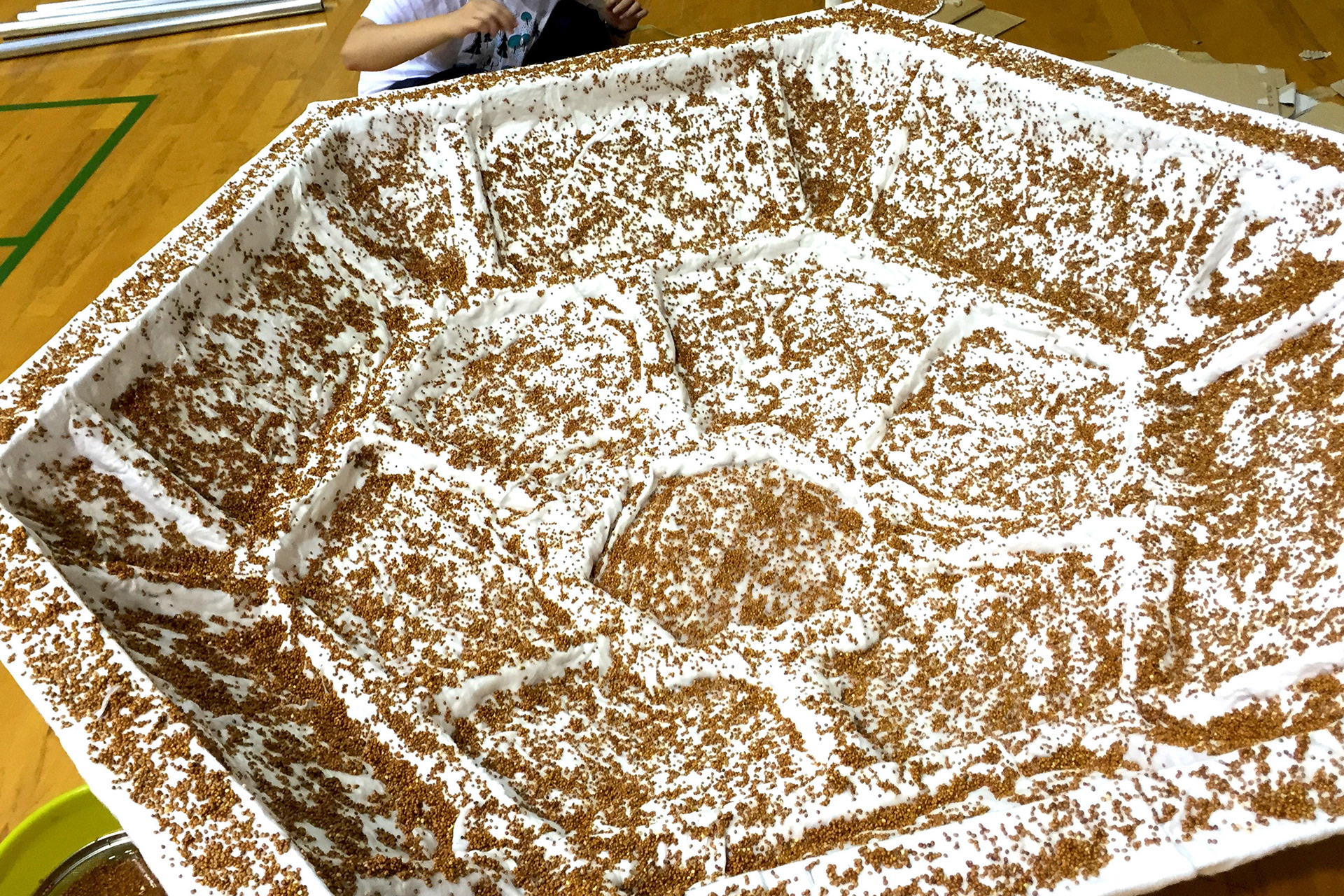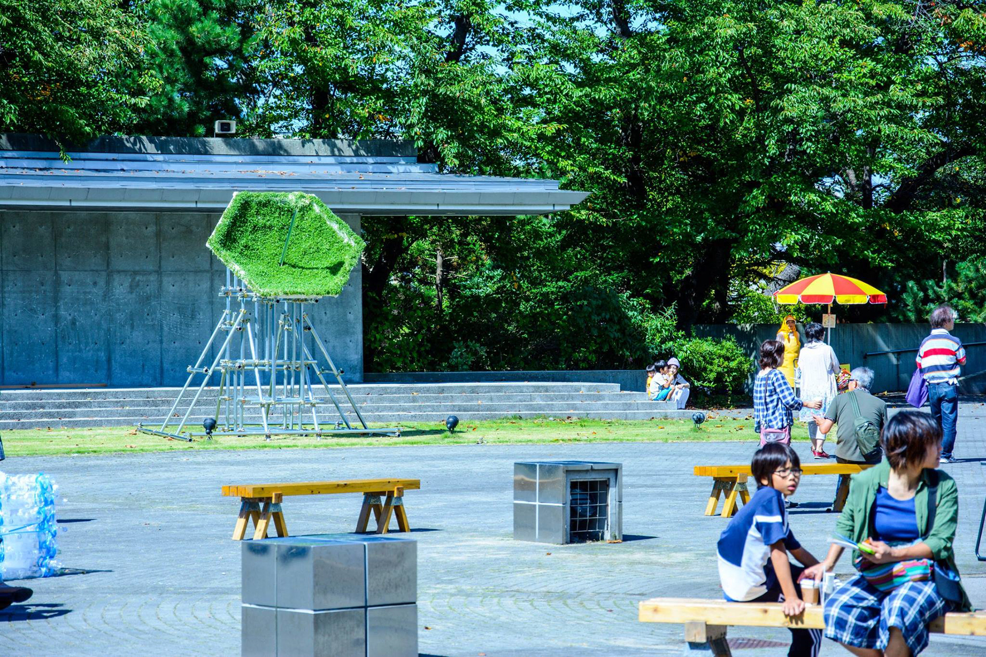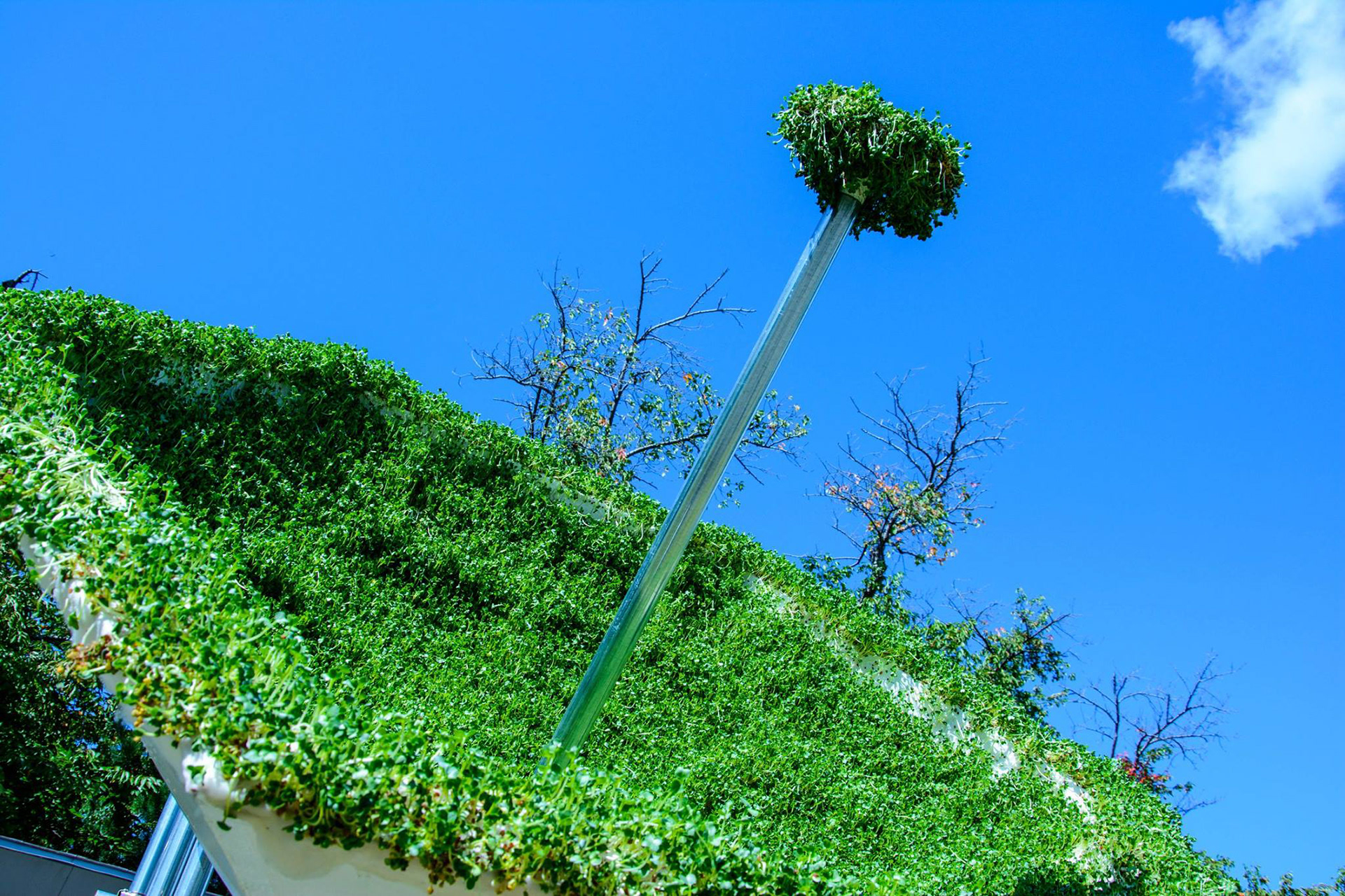 素材:かいわれ大根・木材・単管パイプ・脱脂綿